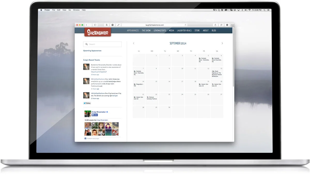 After our standard discovery processor and working out a detailed site structure, we set out on designing a website which would focus on Laughter Heals while also encompassing the full "Craig Shoemaker" brand.