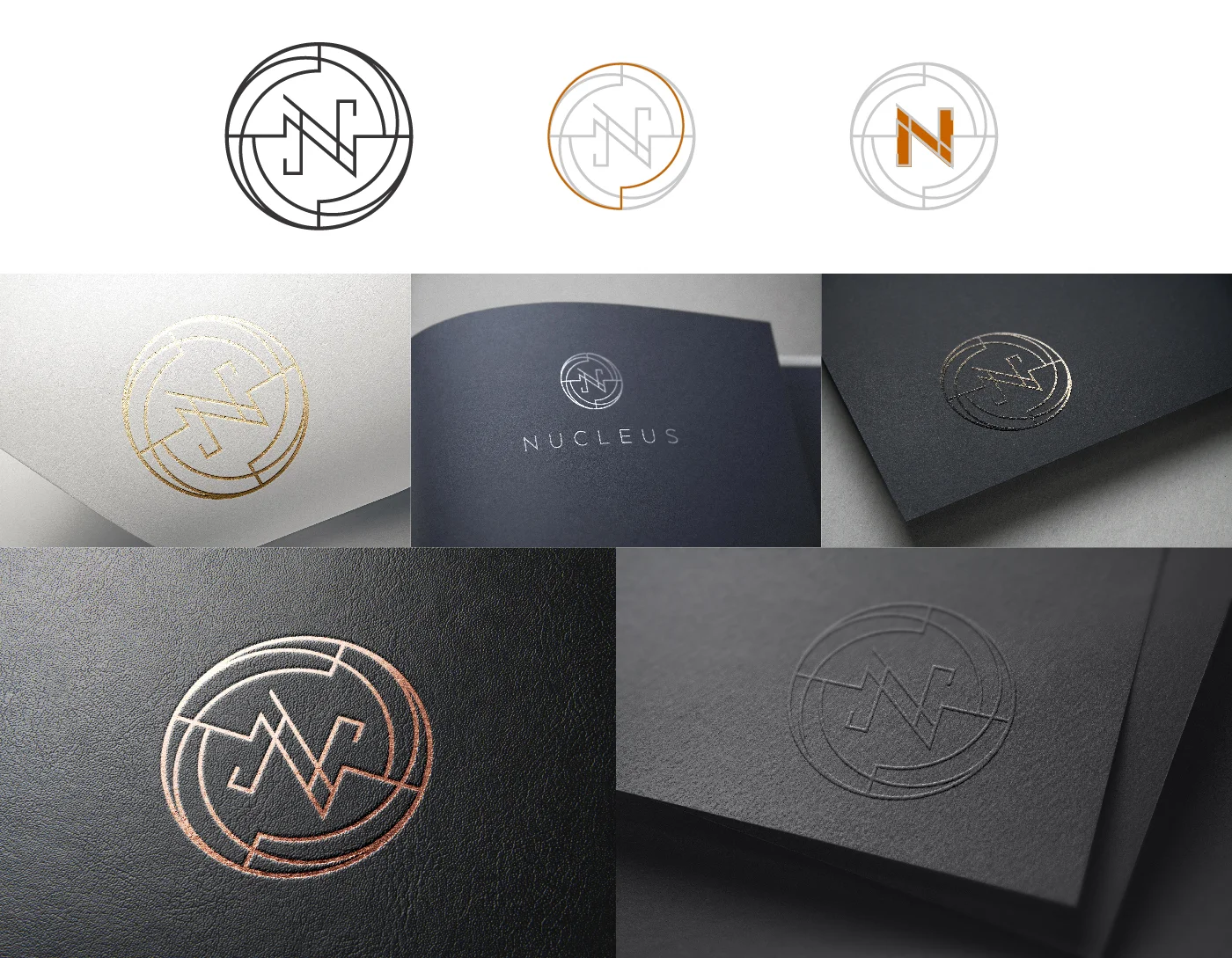 Due to the exclusive nature of the brand, we chose to never include the full name—"Nucleus." Instead, stationery includes only the logo, done in a copper foil. We also created a wax seal for envelopes.
