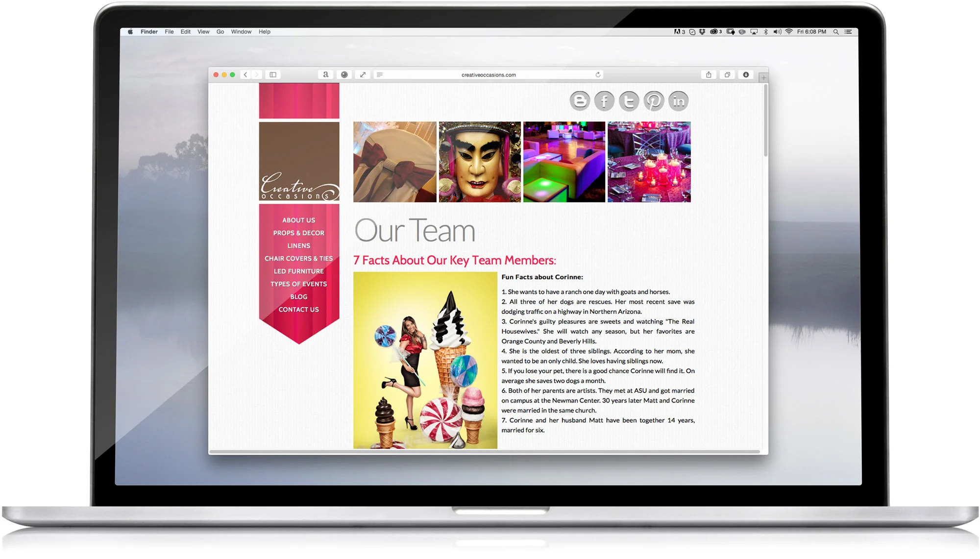 Creative Occasions approached Tethos with the task of branding their company and creating a website that would promote their various services.
